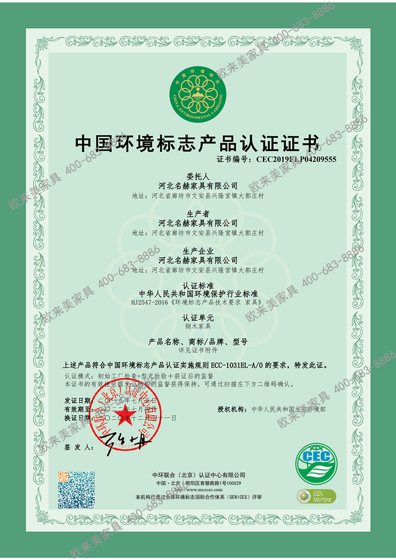 中国环境标志产品认证证书